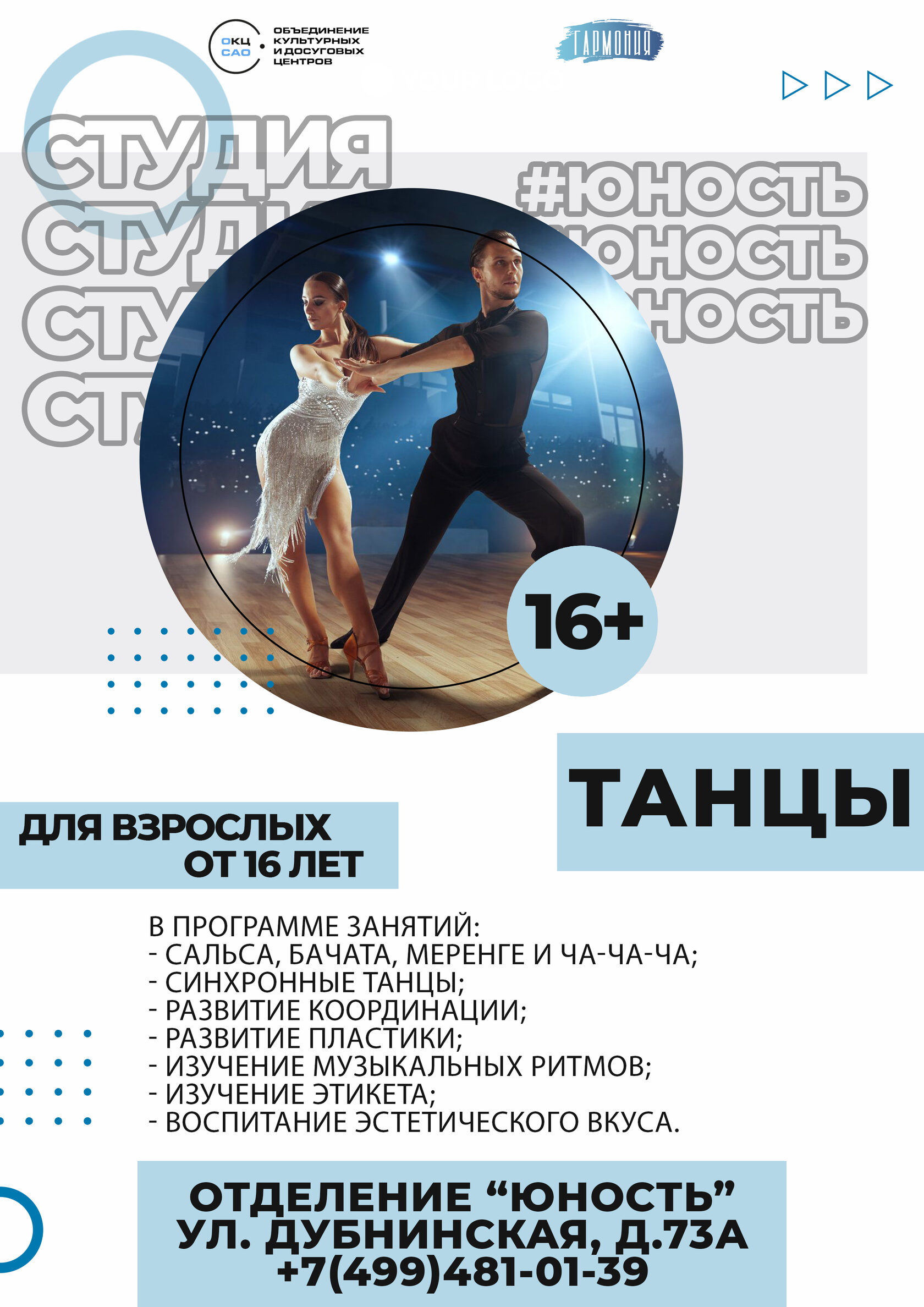 Проводится обучение латиноамериканским и европейским танцам с изучением основ их культуры. Занятия способствуют развитию ритма, координации и пластики, а также формируют уверенность в себе. Участники также принимают участие в соревнованиях и конкурсах.