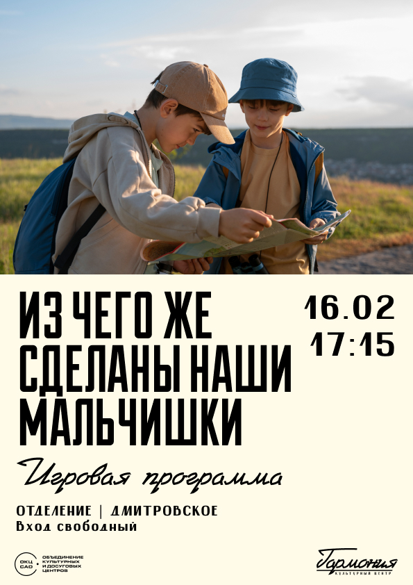 В КЦ "Гармония" пройдёт интерактивная игровая программа "Из чего же сделаны наши мальчишки".