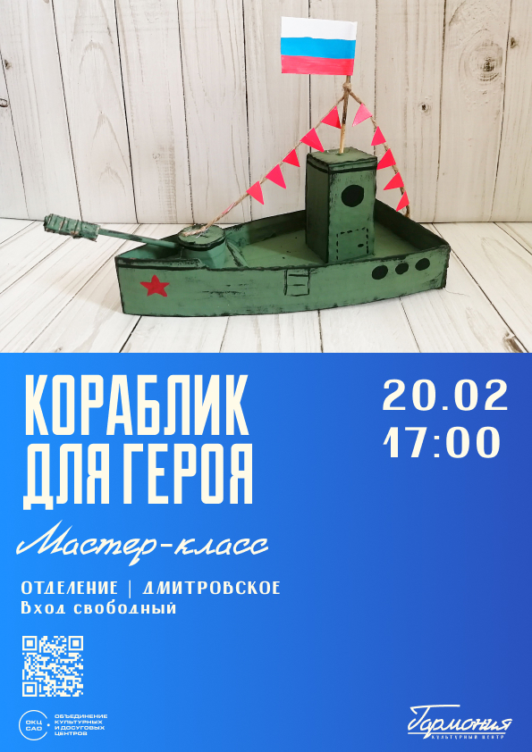В КЦ "Гармония" пройдет мастер-класс "Кораблик для героя".