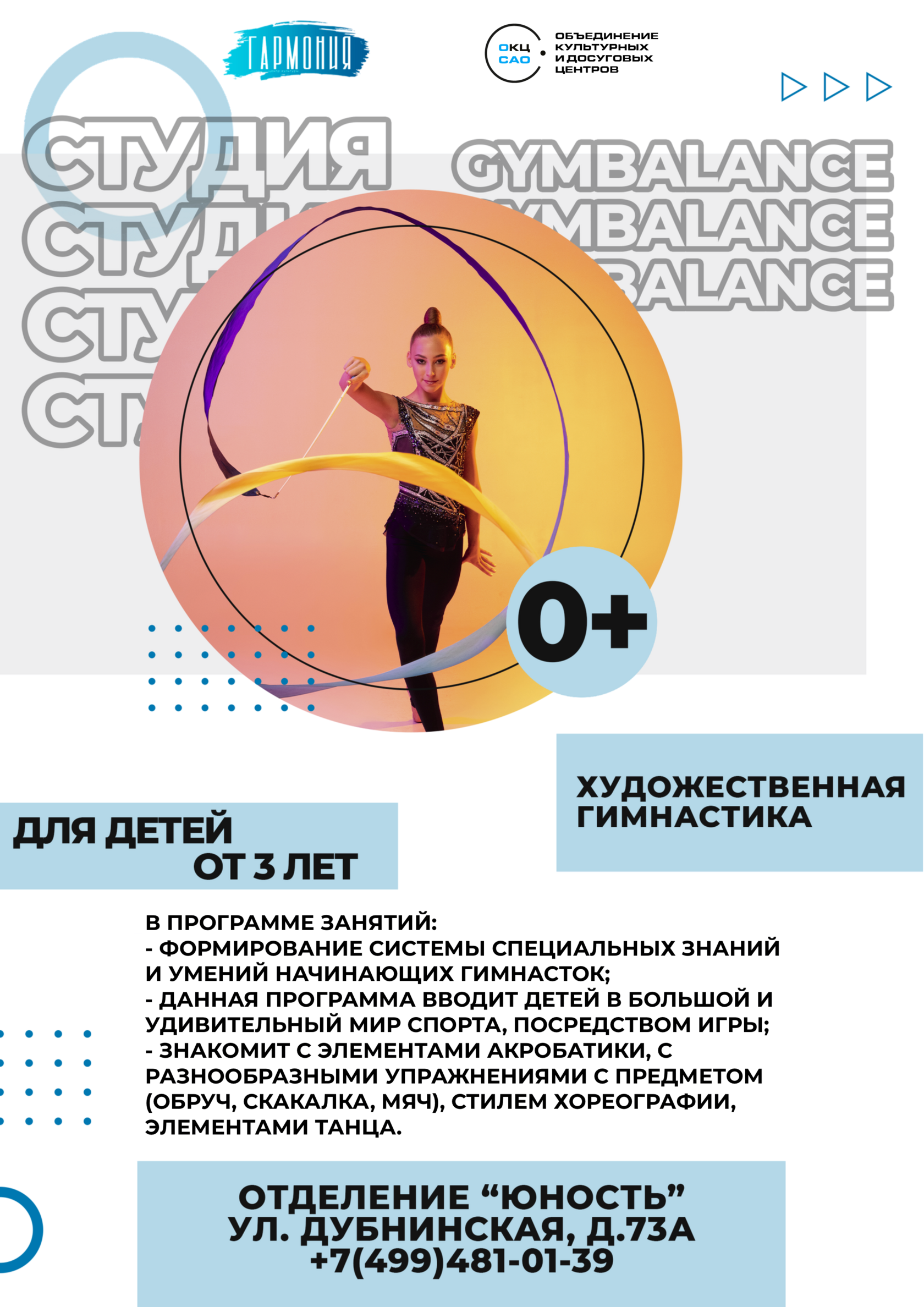 GymBalance - студия, в которой дети осваивают первые гимнастические элементы, занимаются растяжкой, знакомятся с предметами для упражнений, получают необходимую физическую подготовку для пробы себя в гимнастическом направлении. Наша главная задача привить девочкам любовь к художественной гимнастике, заложить физическую и психологическую основу для выступлений и дать почувствовать себя гимнасткой.