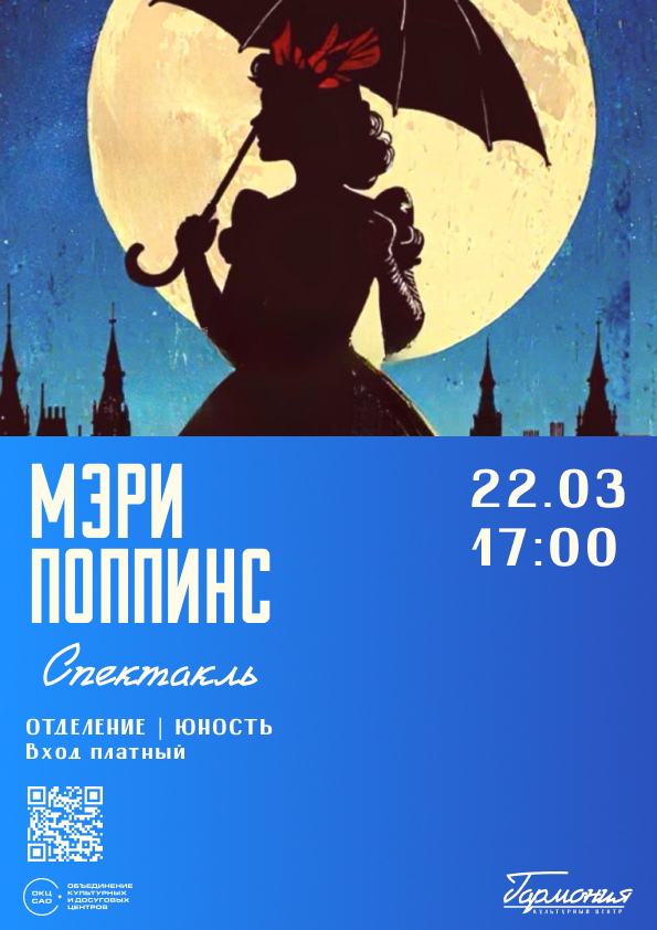 В КЦ «Гармония» покажут музыкальный спектакль «Мэри Поппинс» по мотивам произведений Памелы Трэверс.