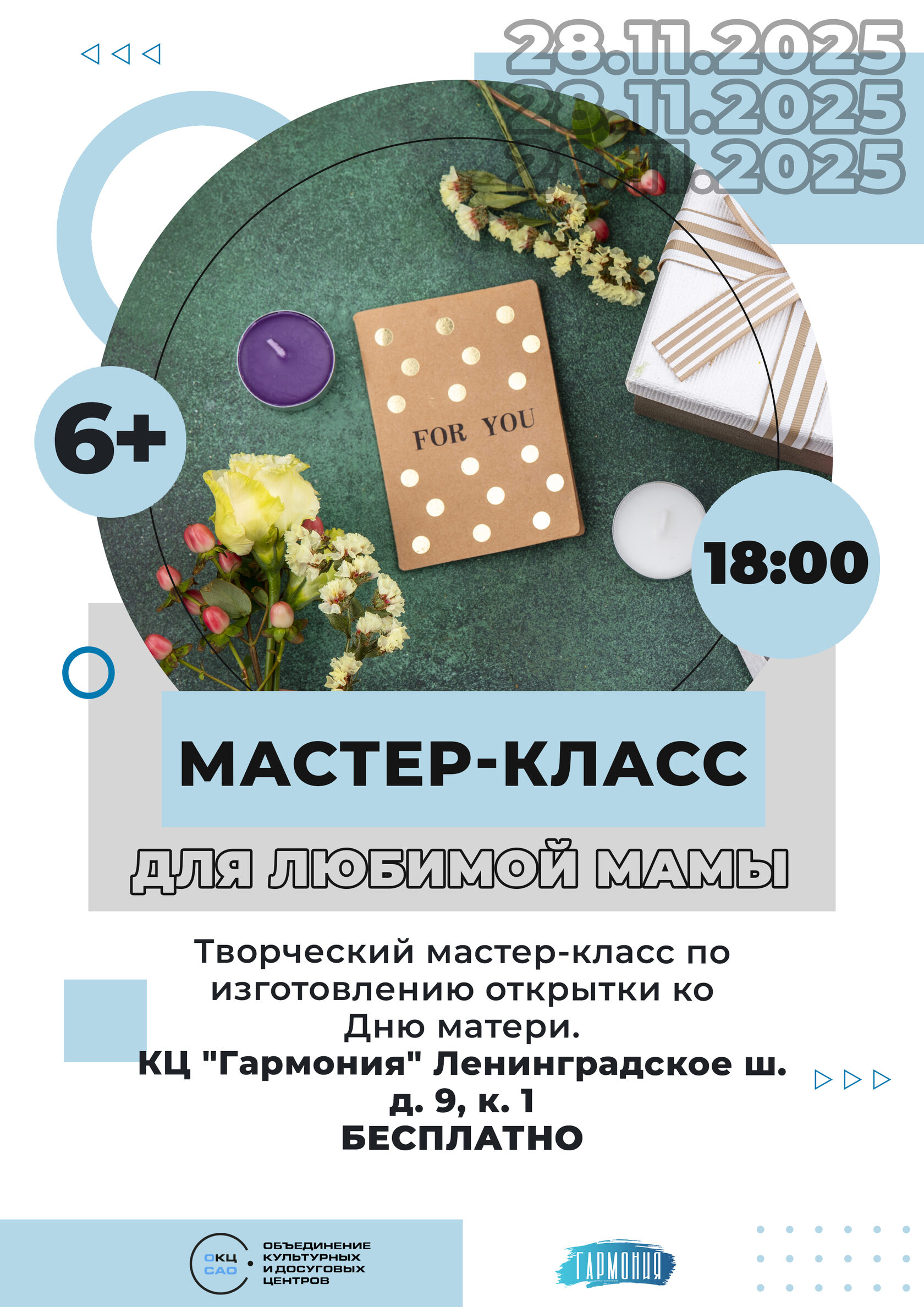 Приглашаем Вас в КЦ "Гармония" на мастер-класс по изготовлению открытки, посвящённый Дню матери.